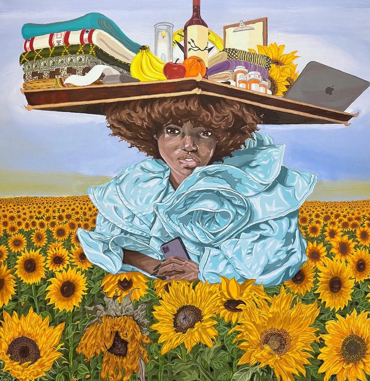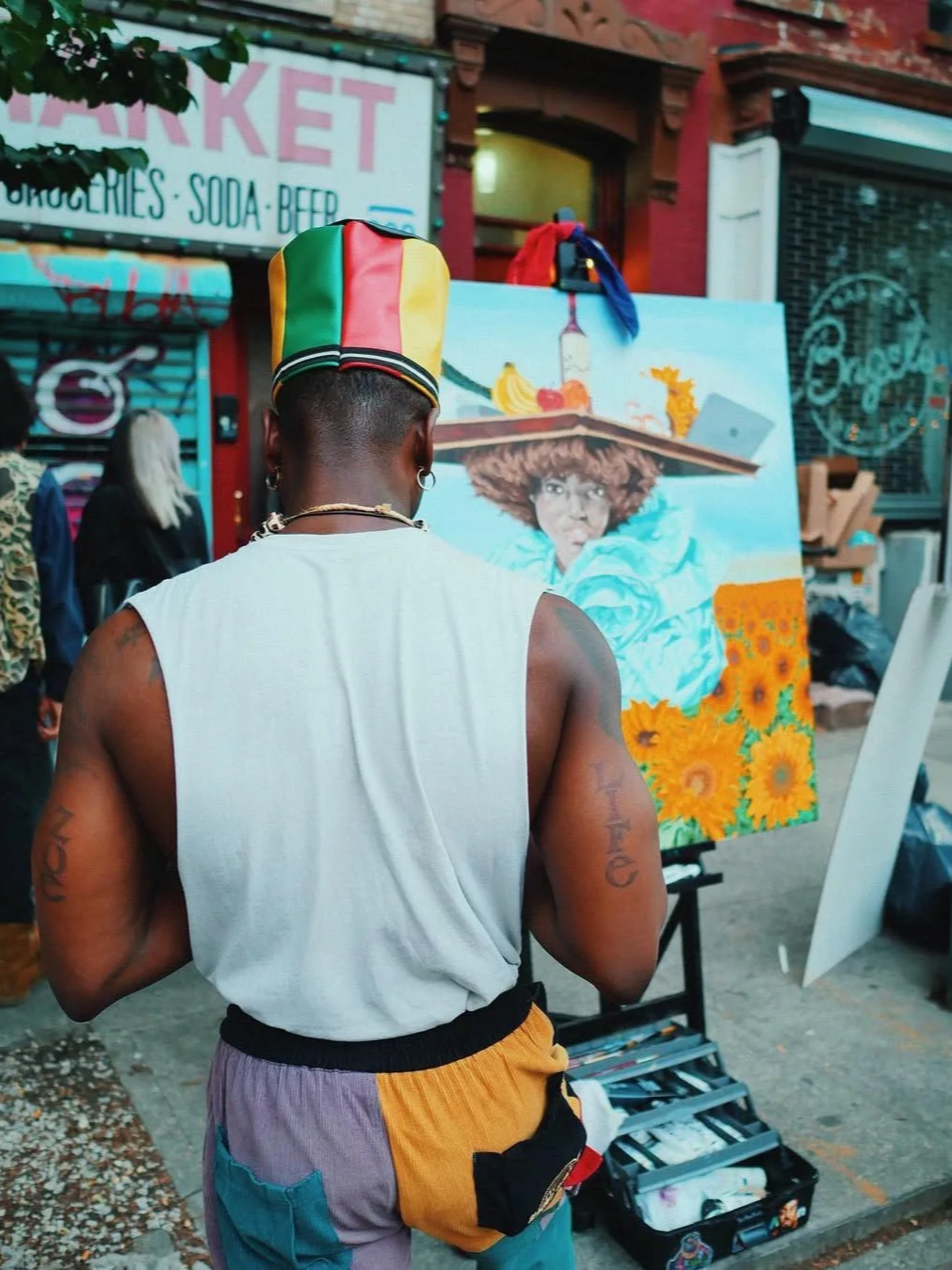 Inspiration for his artwork does not arrive as concepts, but as revelations. “People call them ideas, but for me they’re visions,” he explains. “If I see something that makes me feel deeply, I have to paint it.” The process can take months. A vision may start one way, then evolve as his life and the world around him shift. Sometimes his pieces feel like journals, layered with personal and political context. Music often sparks the visions, but water does too — even the sound of a sink being turned on can set the ideas in motion. “These situations just do something to my brain and visions come to me,” he says. Mere sees his work as a portal that reflects on the experiences of his audience. He offers a glimpse into worlds his viewers may have never seen or understood. He aims to create art that resist passive observation and invites others to engage, reflect, and question their beliefs. Mere's creative practice is rooted in the cultural complexities of the African diaspora. He is driven by a desire to give a visual voice to those long silenced by social expectations, a mission born from his own early voicelessness. He also carries a piece of advice from his mentor that he passes on to young artists: “Move with no fear. No fear of judgment, no fear of putting your art out into the world. Whatever your spirit is telling you to do — move toward it without hesitation. Move with no fear.” Mere also carries a piece of advice from his mentor that he passes on to young artists: “Move with no fear. No fear of judgment, no fear of putting your art out into the world. Whatever your spirit is telling you to do, move toward it without hesitation. Move with no fear.”
